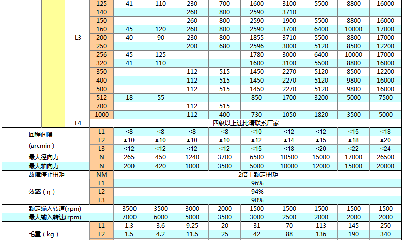 速比:1-1000有19種比速可選擇;分一、二、三級(jí)行星傳動(dòng);
